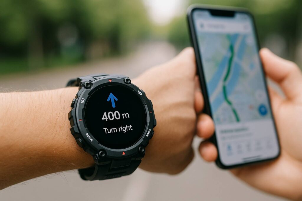 一方で、都市部での移動やサイクリングには、Googleマップ連携が実用的です。Zeppアプリの「アプリ通知」を利用すれば、スマートフォンのGoogleマップからナビ通知をウォッチに転送できます。通知はシンプルなテキストとアイコン形式で、交差点ごとの案内を確認できます。さらに、Androidユーザーの場合は「Notify for GMaps」などのサードパーティアプリを活用すると、通知タイミングの細かい調整が可能です。これにより、曲がり角直前に通知が届くよう最適化でき、都市部ナビゲーションがより実用的になります。